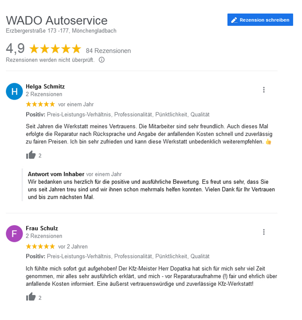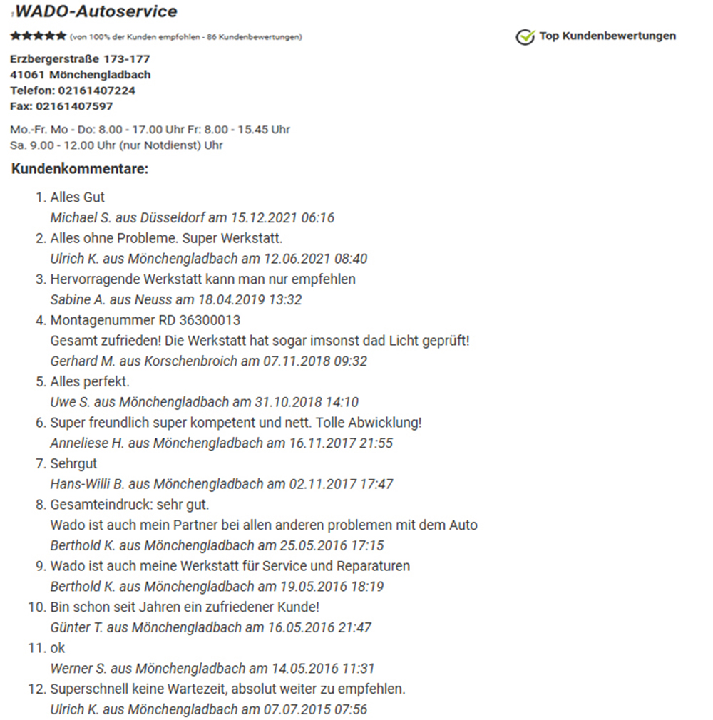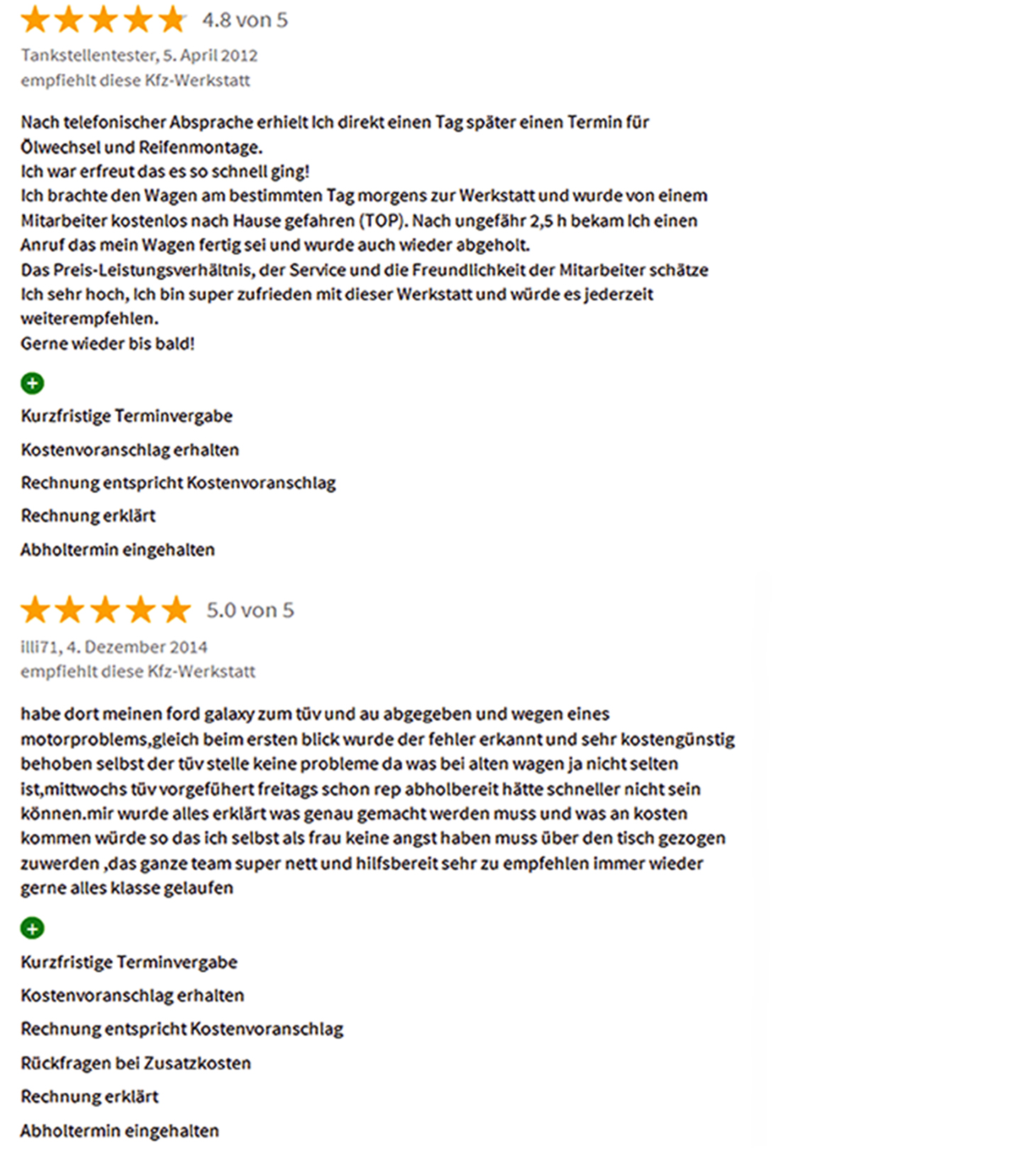 Hier ein kleiner Zusammenschnitt einiger Werkstattbewertungen unserer Kunden. Wir möchten uns recht herzlich für das entgegengebrachte Vertrauen bedanken!